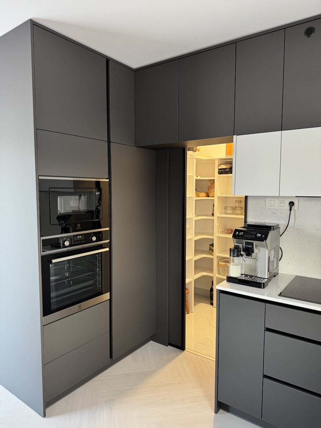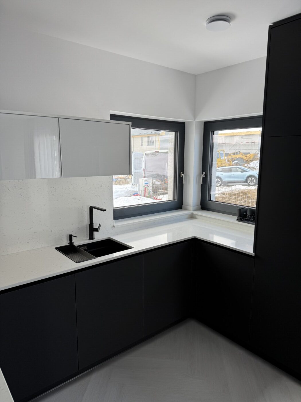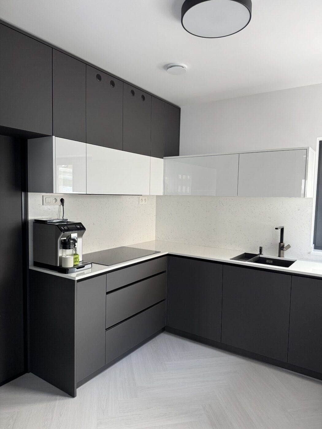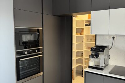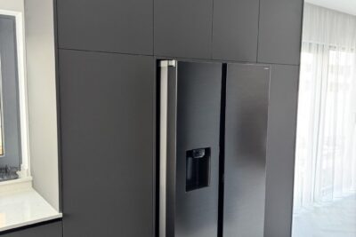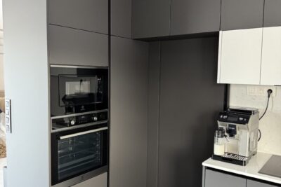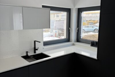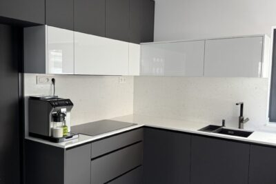 Kuchynská linka a iné – Sp. Belá – Strážky Materiál, vysoké skrine: EGGER U960 ST9 Onyxovo šedáMateriál, spodné skrinky: EGGER U763 ST9 Perlovo šedá - striekané, v prevedení leskPracovná doska: EGGER F800 ST9 Mramor krištálovýKovania: BLUM Šatník – Veľká LomnicaPREVIOUS Kuchynská linka – ViedeňNEXT
