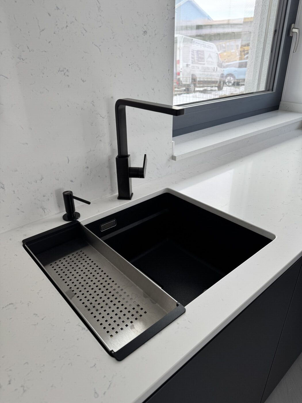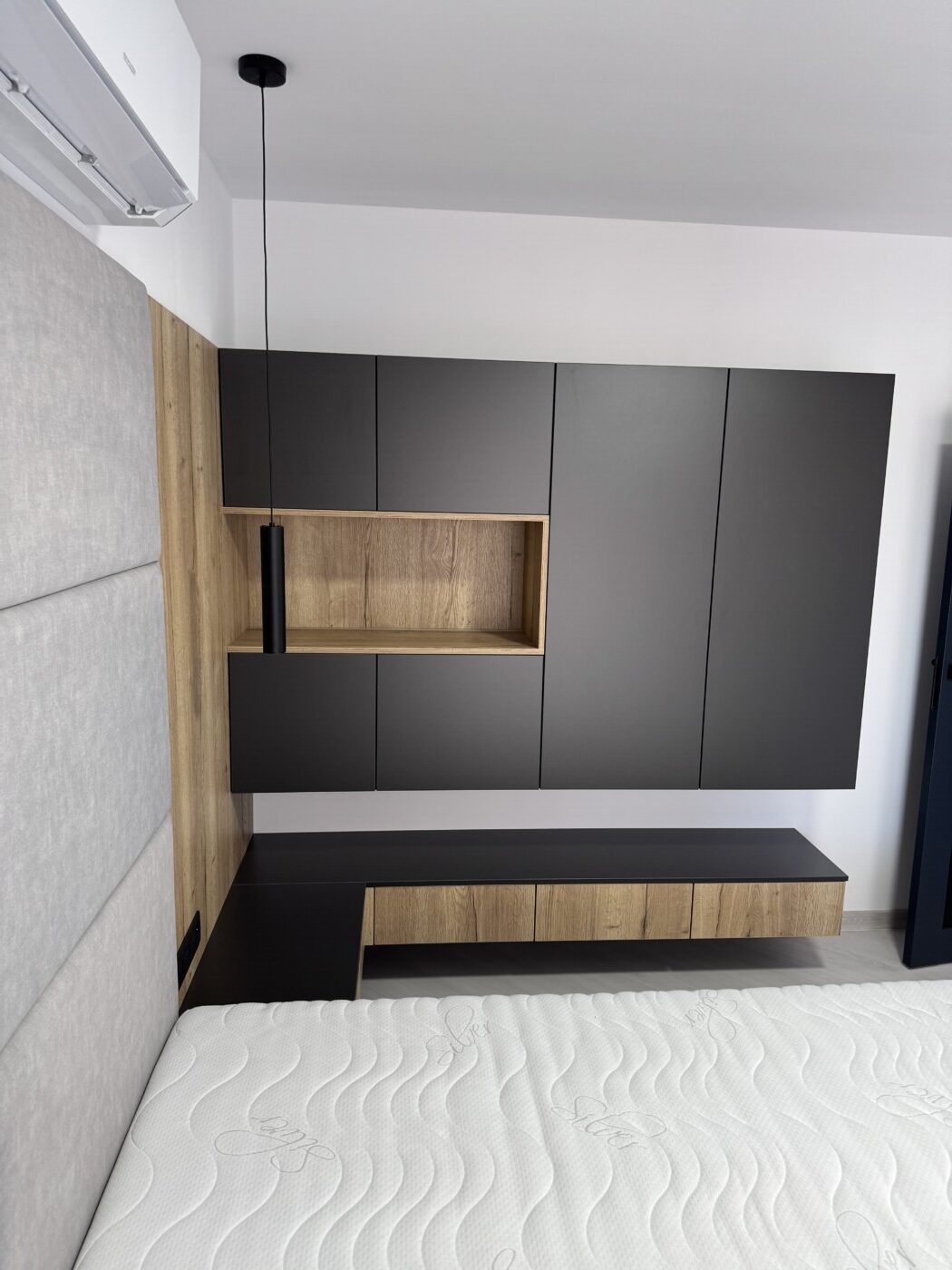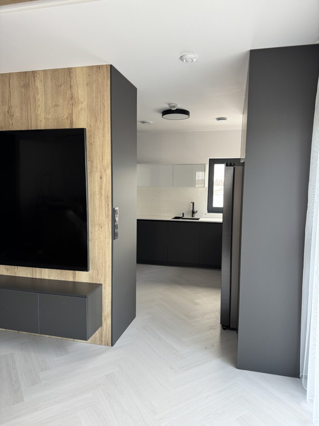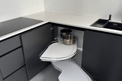 Kuchynská linka a iné – Sp. Belá – Strážky Materiál, vysoké skrine: EGGER U960 ST9 Onyxovo šedáMateriál, spodné skrinky: EGGER U763 ST9 Perlovo šedá - striekané, v prevedení leskPracovná doska: EGGER F800 ST9 Mramor krištálovýKovania: BLUM Šatník – Veľká LomnicaPREVIOUS Kuchynská linka – ViedeňNEXT