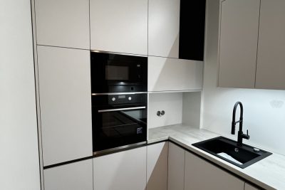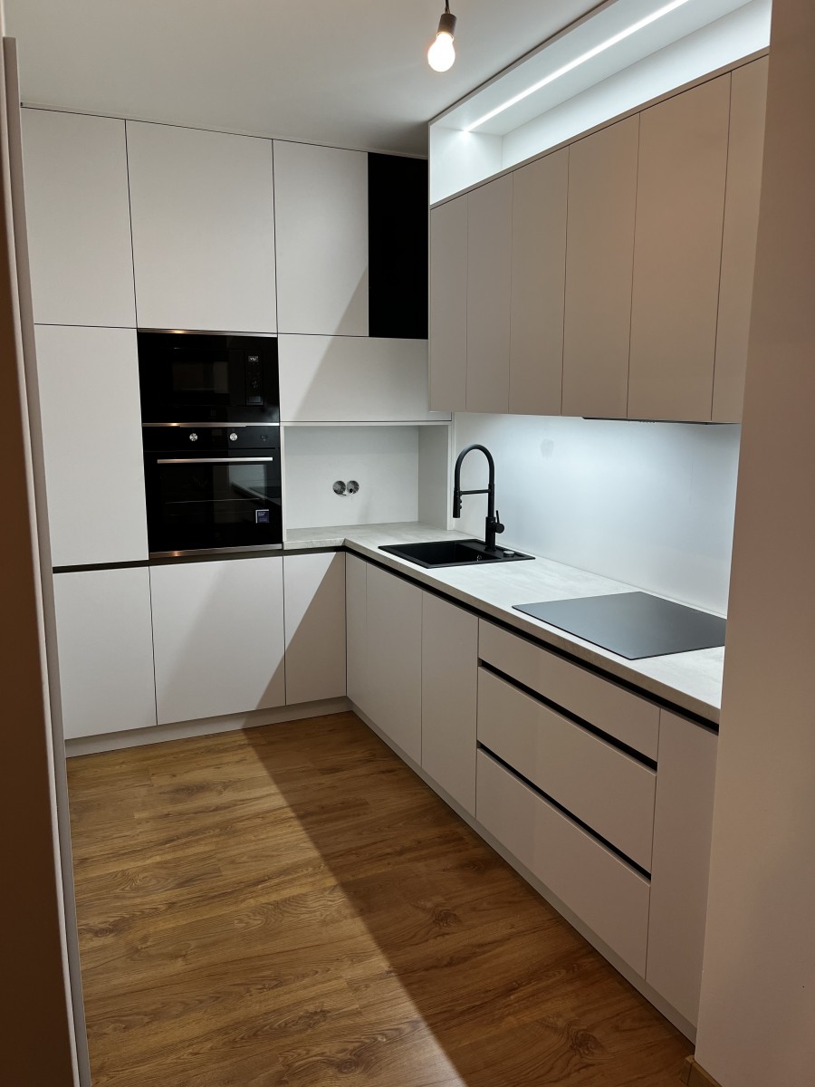 Kuchynská linka – Piešťany Moderná kuchynská linka s čistými líniami.Materiál: Striekané dvierka v prevedení SUPERMATKovania: BLUMSpotrebiče: ELECTROLUXPracovná doska: EGGER F637 Chromix biely Kuchynská linka – SvitPREVIOUS Kuchynská linka – BušovceNEXT